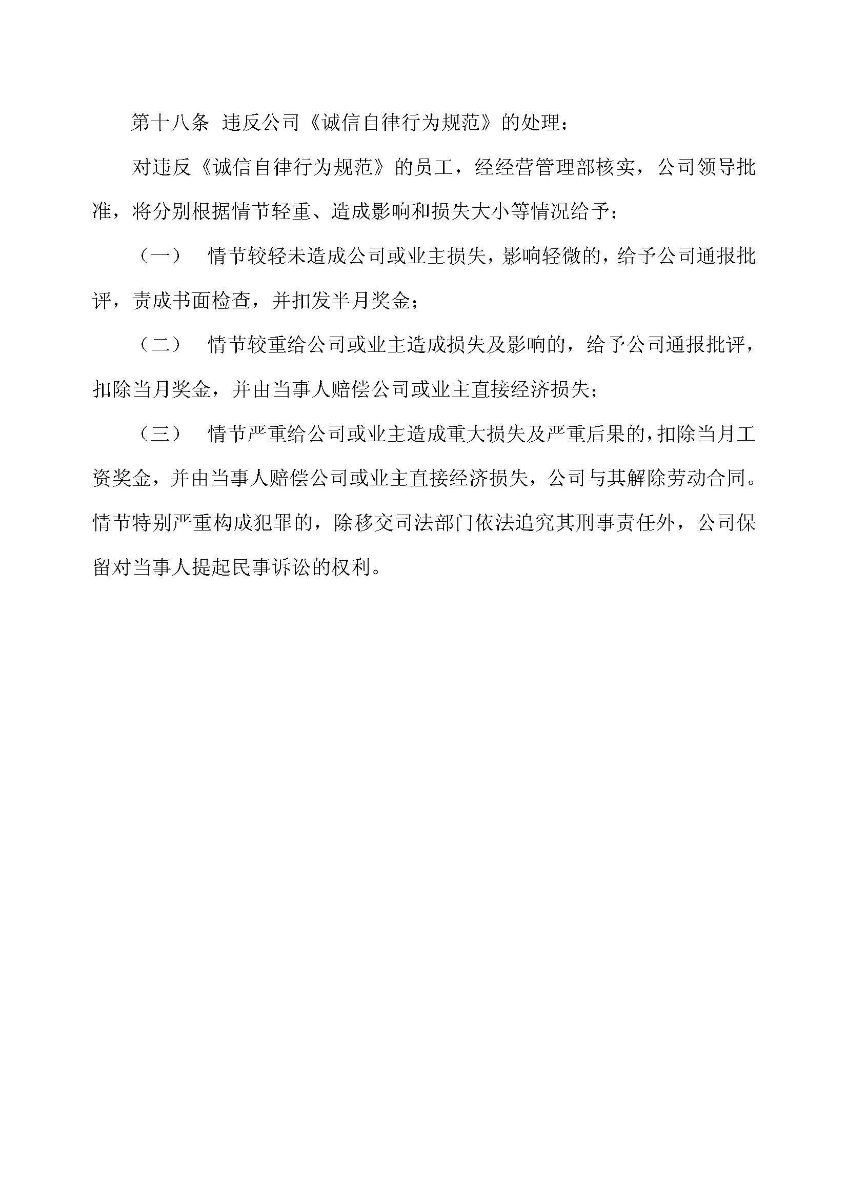 第十八條 違反公司《誠(chéng)信自律行為規(guī)范》的處理: